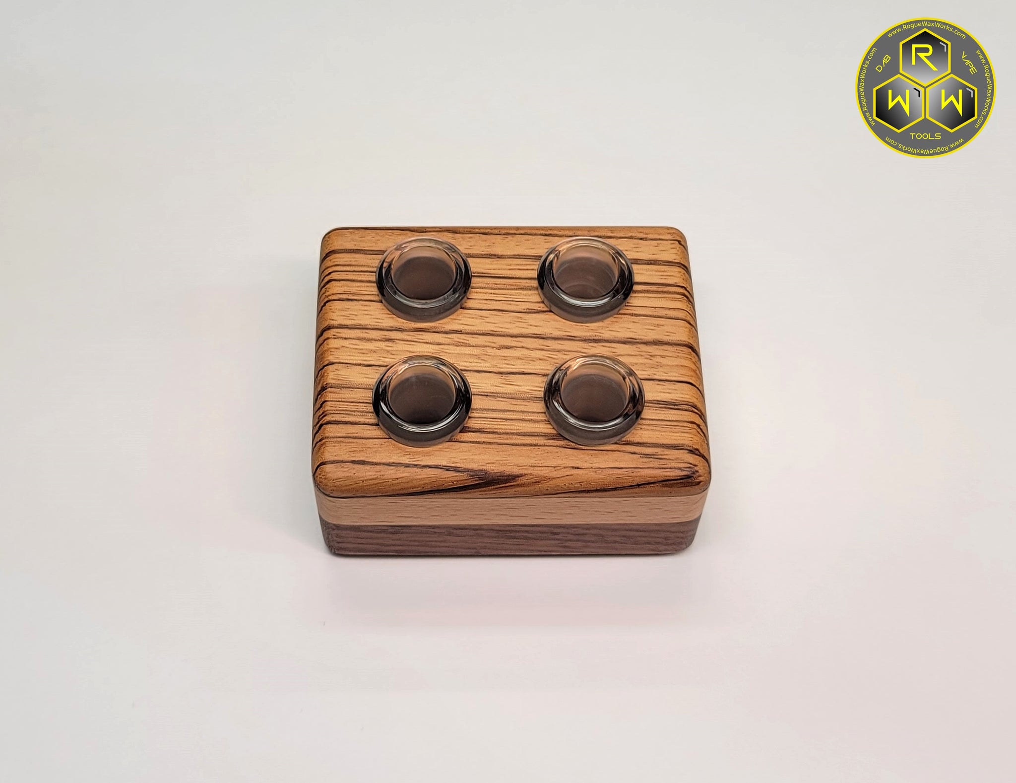 Hand made, wax rubbed, Spalted Tamarind, Beech & Walnut wood stand with 4 x 14mm female glass fittings