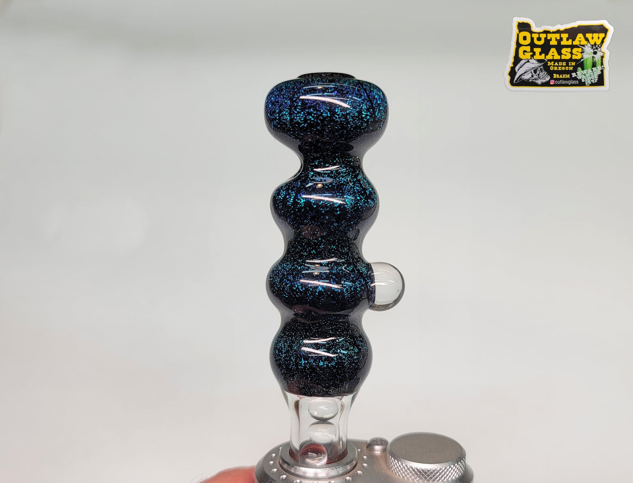 Hand made, thick glass filled with quartz coolin beads create a beautiful stem with a lot of surface area for cooling. These one of a kind stems are hand made by Outlaw Glass of Southern Oregon.