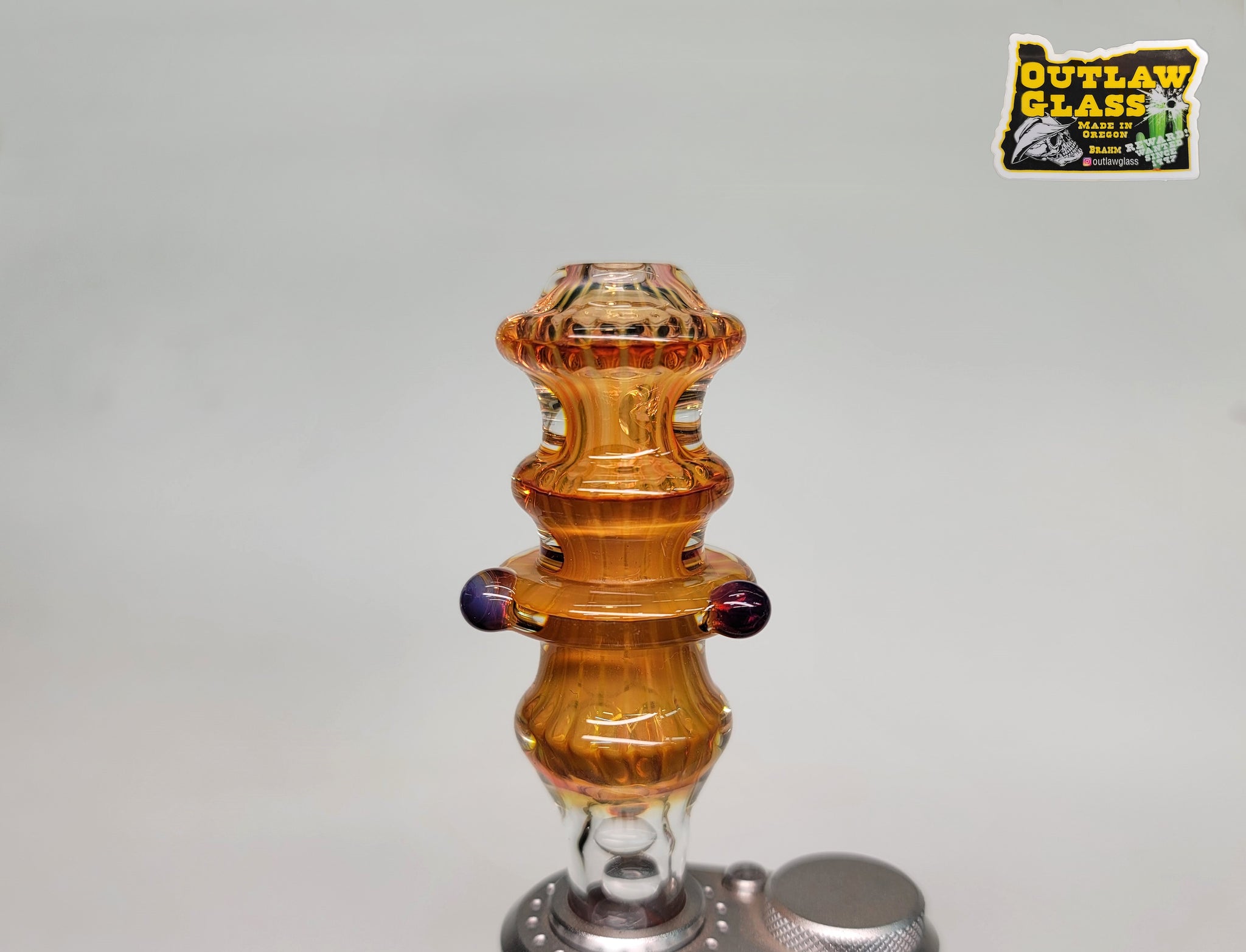 Hand made, thick glass filled with quartz coolin beads create a beautiful stem with a lot of surface area for cooling. These one of a kind stems are hand made by Outlaw Glass of Southern Oregon.